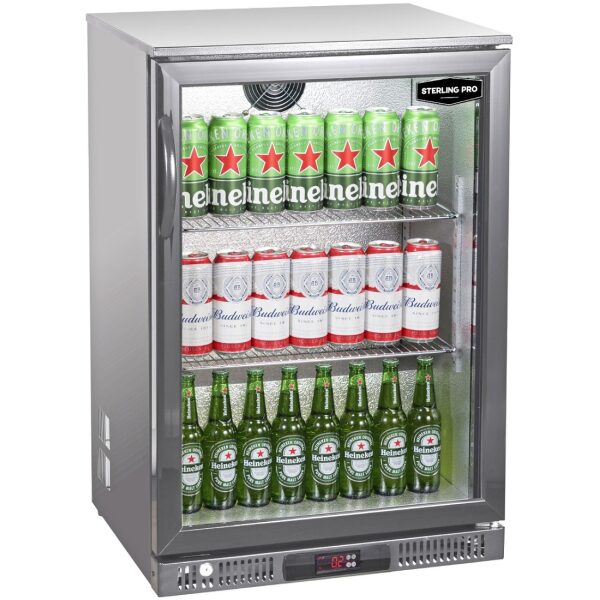 Sterling Pro Green SP1LO-OUT-STS Hinged Single Door Low Height Stainless Steel Outdoor Bottle Cooler, 106 x 330ml Bottles