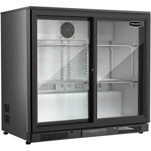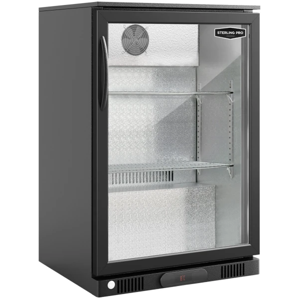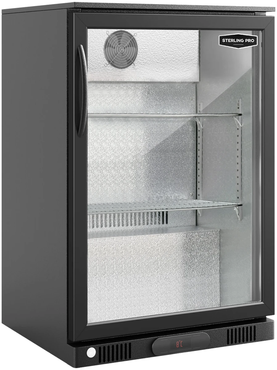 Sterling Pro SP1HC-LOW-BK Black Single Door Low Height Hinged Bottle Cooler, 106 x 330ml Bottles